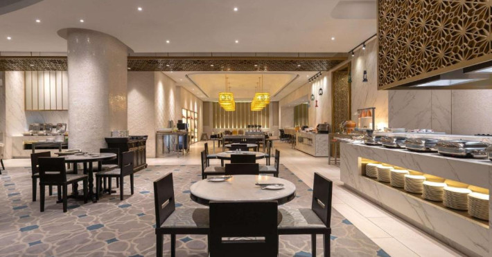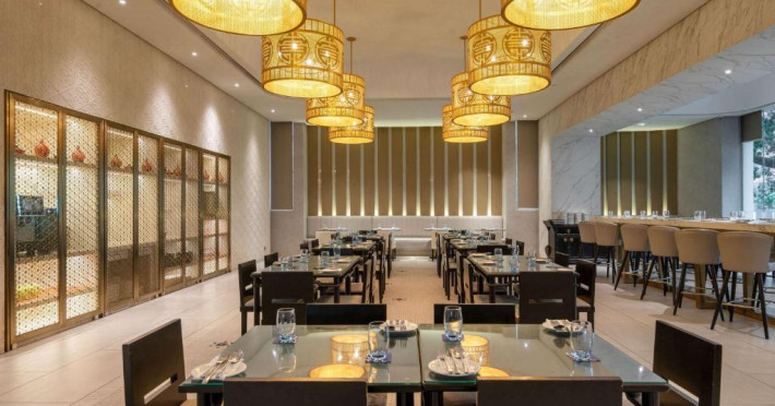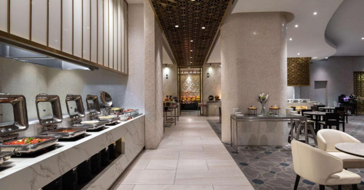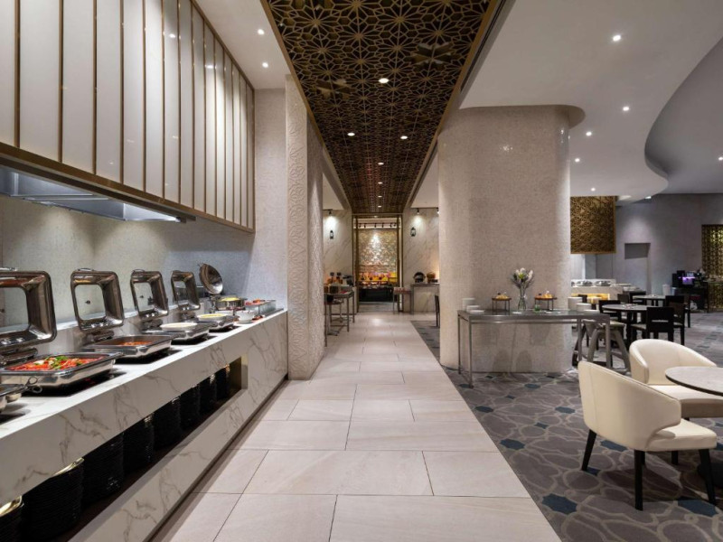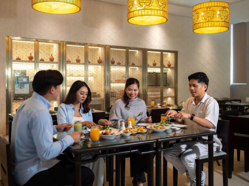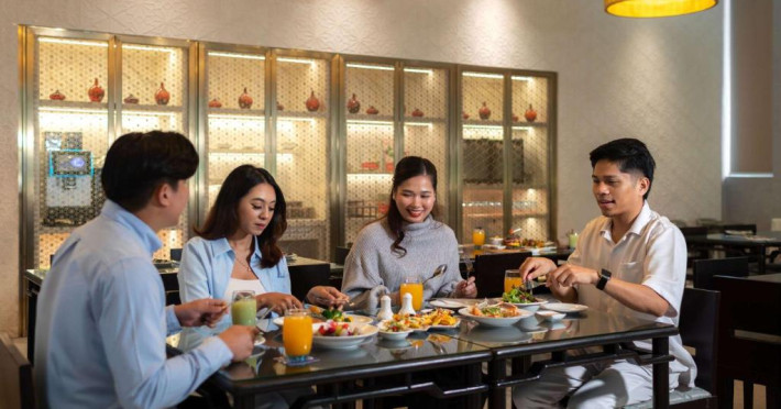 Food Exchange oferă un mic dejun tip bufet zilnic, iar un meniu à la carte asiatic și internațional este disponibil pentru pranz și cină in fiecare zi. Barul Gourmet oferă o gamă largă de băuturi și gustări intr-un cadru elegant.