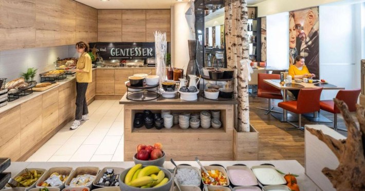 Oaspeții pot savura preparate austriece și internaționale la restaurantul modern. Micul dejun bogat tip bufet este servit pană la ora 11:30 in weekend și de sărbătorile legale.