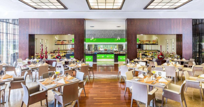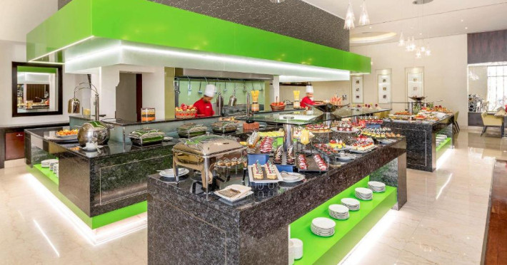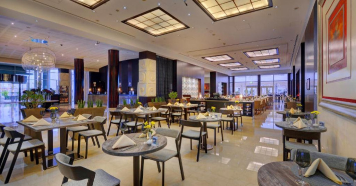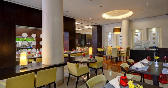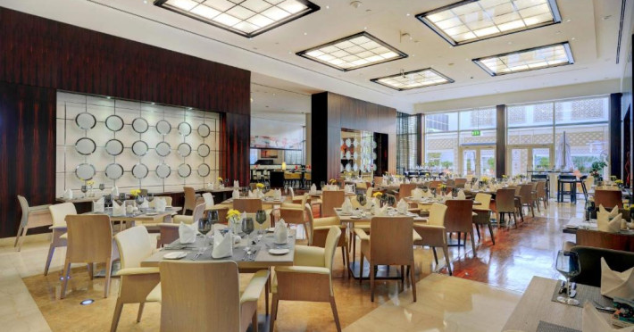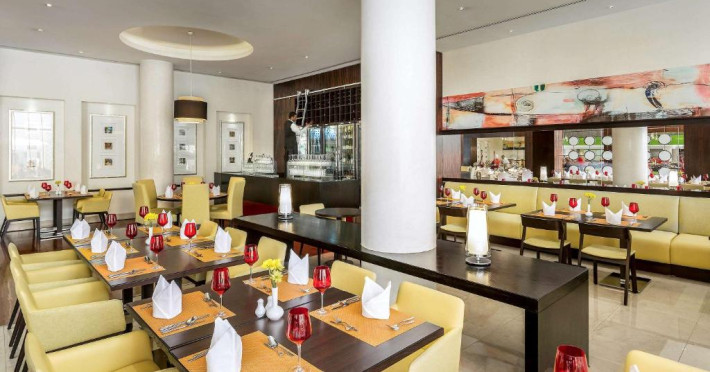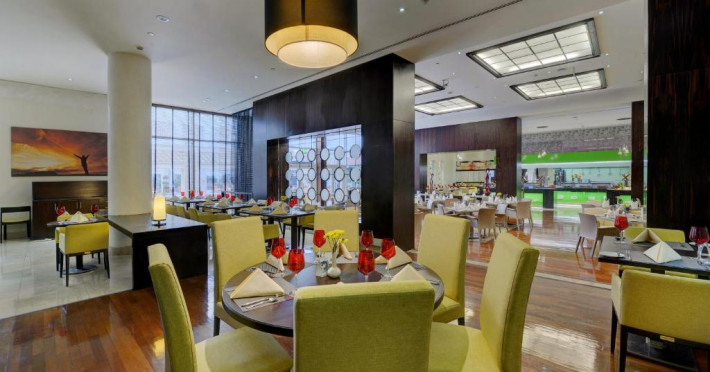 La Novotel World Trade Centre Dubai oaspeții au la dispoziție un restaurant care servește mâncare à la carte. Preparate din bucătăria internațională așteaptă să fie degustate în fiecare zi. Masa poate fi servită atât în interior, cît si în aer liber, pe terasă, în funcție de vreme. 2 baruri, dintre care unul la piscină, sunt disponibile cu o ofertă variată de băuturi răcoritoare și alcoolice. În cadrul proprietății există și o cafenea care servește specialități din cafea și diverse delicatese. Pentru cei cu anumite nevoi de nutriție, Novotel World Trade Centre Dubai oferă meniuri pentru diete speciale.