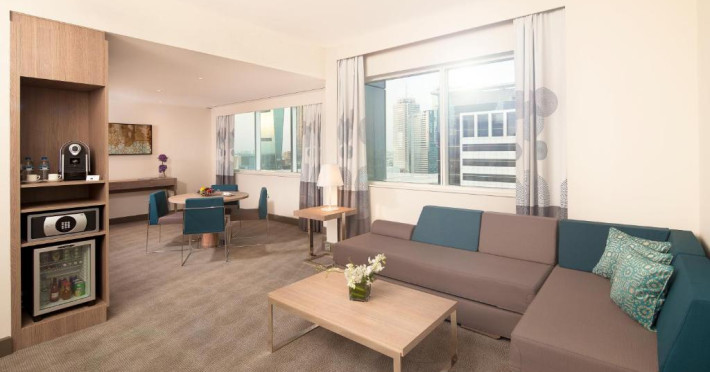 Novotel World Trade Centre Dubai este o proprietate de 4 stele care se află în Dubai și oferă piscină în aer liber, terasă cu șezlonguri și umbrele de soare, precum și centru spa/wellness care asigură servicii pentru un sejur extrem de relaxant. Facilitățile de la Novotel World Trade Centre Dubai includ sală de fitness și business center. Proprietatea are, de asemenea, servicii de recepție cu program non - stop și concierge. Se oferă acces gratuit la internet Wi-fi în spațiile publice. Parcarea este disponibilă la proprietate gratuit.