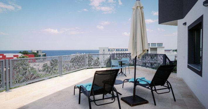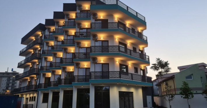 Apartamentele sunt formate dintr-un dormitor si un living separate prin usa. Suprafata totala este de 47 mp (inclusiv baia si balconul). Cate unul pe fiecare etaj, orientate spre sud-vest incepand de la etajul 1 pana la etajul 4, de la etajele superioare se poate vedea partial marea.