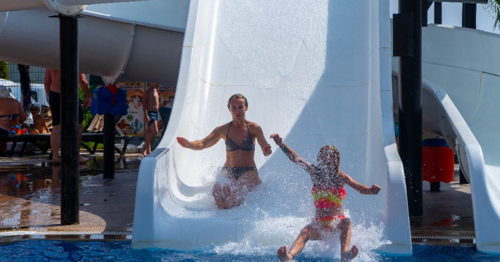 Facilitati hotel: Oaspetii pot beneficia de 4 piscine exterioare, 1 piscina interioara, piscina pentru copii, sezlonguri si umbrele, parcare, kids club, yoga, fitness, aerobic, spa, darts, programe de divertisment, spectacole.O gama variata de mancaruri si bauturi in cele 6 restaurante si 9 baruri, piscina, loc de joaca, tobogane, kids club.