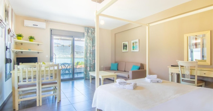 Oferă unități de cazare moderne cu Wi-Fi gratuit şi vedere la mare sau la grădină. Turiștii pot savura băuturi şi cafea în zona barului de la piscină. Ntinas Filoxenia Hotel pune la dispoziție loc de joacă, minimarket și magazin de cadouri.