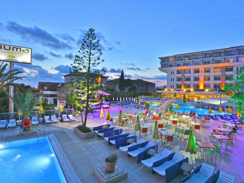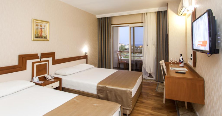 Localizare:Hotelul este situat in regiunea Konakli la 12km de centrul orasului Alanya si la 130km de aeroportul Antalya. Distanta de plaja: 500m Facilitati hotel: Restaurantul principal pentru servirea meselor tip bufet, bar la psicina, bar pe plaja. Servicii cu plata: servicii medicale, baby sitting, coafor, internet café, magazine, rent a car. Conectare la internet WI-FI in Lobby gratuit. ACTIVITĂȚI EXTRA COST: Băuturi importate, băuturi la sticlă Sucuri proaspete de fructe, cafele turcești Vin special, Șampanie Seif în cameră Coafor Baie turcească Masaj, peeling, saună Doctor Magazin Toate sporturile acvatice (pe plajă) Check-out târziu Transfer de la aeroport ACTIVITĂȚI INCLUSE: Băuturi alcoolice locale și non-alcoolice Băuturi răcoritoare Băuturi concentrate Minibar (apă zilnică) Spectacole de animație Sală de fitness Umbrele și șezlonguri (la piscină și pe plajă) Prosoape de plajă (schimbarea este contra cost) Wi-Fi în hotel și cameră (2GB) Mini Club (4-12 ani) Piscine exterioare pentru adulti si copii, volei pe plaja, tenis de masa, centru fitness, baie Turceasca – gratuit. Servicii cu plata: masaj, sauna, sporturi nautice, centru SPA si salon de infrumusetare, biliard si jocuri pe calculator. Programul de animatie in timpul zilei si diverse spectacole seara. Mini club pentru copii cu varste intre 04 – 12 ani. Facilitati camera: Toate camerele sunt cu baie proprie, cabina de dus, uscator de par, Aer conditionat split, telefon, mini bar (apa, reumplut zilnic), seif (cu plata), parchet, TV satelit si canale de muzica, balcon.Localizare