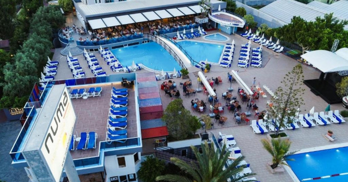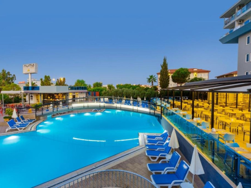 Descriere: Parte a lantului NUMA HOTELS, Numa Konaktepe Hotel ofera servicii de patru stele in regim all inclusive si pune la dispozitia oaspetilor facilitati precum transfer privat gratuit de la si/sau catre aeroport, parcare privata gratuita, sase piscine, acces imediat la plaja, bancomat si schimb valutar.Tip masa: All Inclusive