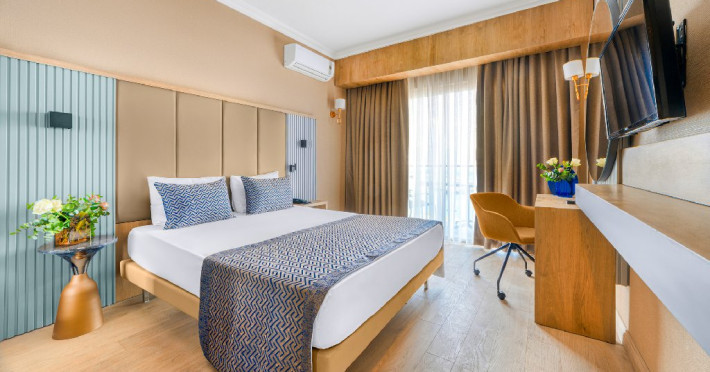 Dotari camere: Hotelul dispune de 58 de camere dotate cu: aer conditionat, TV, minibar, balcon, baie cu cabina de dus, telefon. Camerele standard Land View sunt dotate in plus cu fierbator, aparat de cafea, seif, masa de calcat.