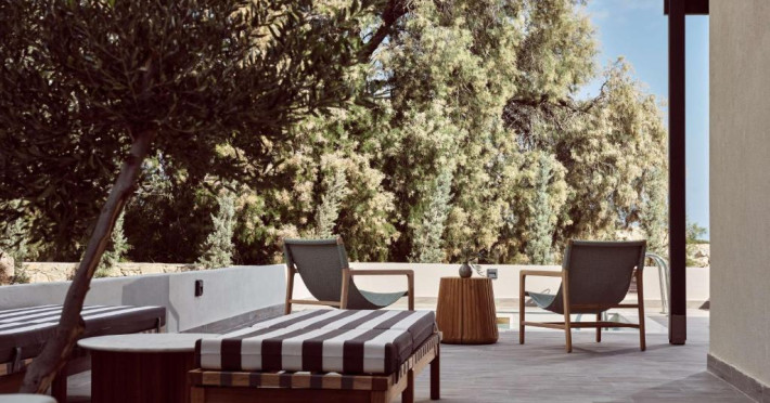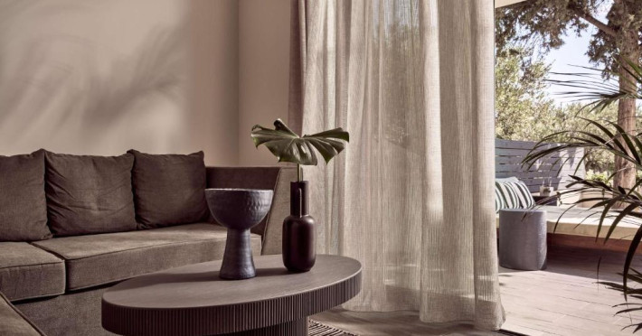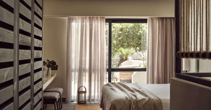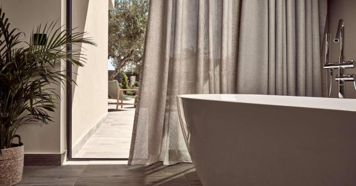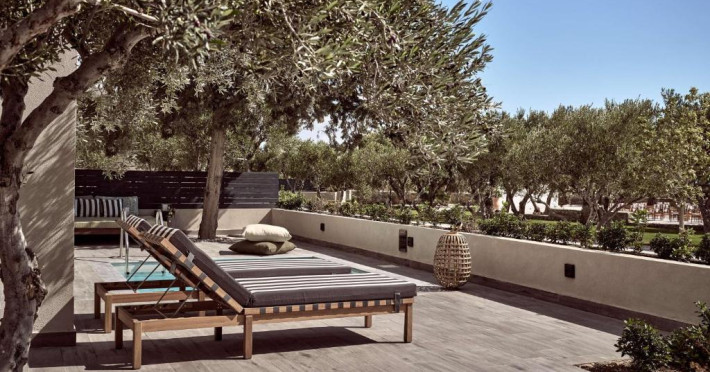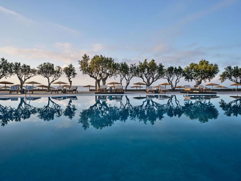 Camerele și suitele, decorate in tonuri naturale și dotate cu mobilier contemporan, oferă vedere spre mare sau spre grădinile resortului. Facilitățile premium includ mai multe piscine infinity cu vedere panoramică spre Marea Mediterană, un spa sofisticat și un centru fitness modern.