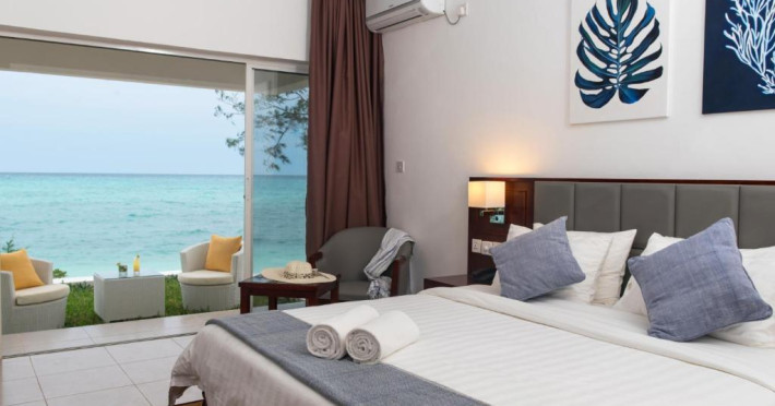 The beach at your holiday destination is patrolled by a lifeguard. The seasonally air-conditioned halal hotel Nungwi Dreams by Mantis***** is equipped with a lobby, internet access as well as a first aid kit. In the outdoor area you will find a pool (open all year), where pool towels are available for free. Furthermore, you can relax outdoors on a terrace. For your entertainment, the hotel offers a library/reading room. For very young guests, kid`s chairs can be provided. You can store your luggage in the hotel's storage room. There is also a laundry service. Ironing equipment can be borrowed at the hotel. For your comfort there is a concierge service. If necessary, you can contact the medical centre (for a fee). The energy supply is 220 Volts. For guests on their honeymoon, the hotel has special offers such as special honeymoon packages. In your hotel, a lot of focus is placed on sustainability. This includes waste segregation in the rooms, the hotel`s own recycling bins, the provision of soap and shampoo dispensers, organic food and ecological meals and environmentally-friendly cleaning. That is why the hotel Nungwi Dreams by Mantis***** was also awarded a sustainability certificate. The hotel requires that all guests pay a deposit upon arrival. American Express, Euro/Master Card and Visa are accepted as means of payment. Catering As catering services the hotel offers all-inclusive, half board, full board and breakfast only. Breakfast is offered from the buffet. Dinner is served as a set meal or à la carte. Your physical well-being is catered for by a buffet restaurant (vegetarian dishes). Sports & Leisure To keep your fitness up on holiday, there is a gym for guests to use. At the beach, you can take advantage of various water sports. Also darts is offered at the hotel. Furthermore, various water sports such as snorkelling and diving are offered in the area. Kiting is also possible in the surroundings of the hotel. For your wellbeing the hotel also offers massages (extra fee). In terms of adult entertainment, live music is presented on certain days. Additional information The hotel staff speak English.The beach at your holiday destination is patrolled by a lifeguard. The seasonally air-conditioned halal hotel Nungwi Dreams by Mantis***** is equipped with a lobby, internet access as well as a first aid kit. In the outdoor area you will find a pool (open all year), where pool towels are available for free. Furthermore, you can relax outdoors on a terrace. For your entertainment, the hotel offers a library/reading room. For very young guests, kid`s chairs can be provided. You can store your luggage in the hotel's storage room. There is also a laundry service. Ironing equipment can be borrowed at the hotel. For your comfort there is a concierge service. If necessary, you can contact the medical centre (for a fee). The energy supply is 220 Volts. For guests on their honeymoon, the hotel has special offers such as special honeymoon packages. In your hotel, a lot of focus is placed on sustainability. This includes waste segregation in the rooms, the hotel`s own recycling bins, the provision of soap and shampoo dispensers, organic food and ecological meals and environmentally-friendly cleaning. That is why the hotel Nungwi Dreams by Mantis***** was also awarded a sustainability certificate. The hotel requires that all guests pay a deposit upon arrival. American Express, Euro/Master Card and Visa are accepted as means of payment. Catering As catering services the hotel offers all-inclusive, half board, full board and breakfast only. Breakfast is offered from the buffet. Dinner is served as a set meal or à la carte. Your physical well-being is catered for by a buffet restaurant (vegetarian dishes). Sports & Leisure To keep your fitness up on holiday, there is a gym for guests to use. At the beach, you can take advantage of various water sports. Also darts is offered at the hotel. Furthermore, various water sports such as snorkelling and diving are offered in the area. Kiting is also possible in the surroundings of the hotel. For your wellbeing the hotel also offers massages (extra fee). In terms of adult entertainment, live music is presented on certain days. Additional information The hotel staff speak English.
