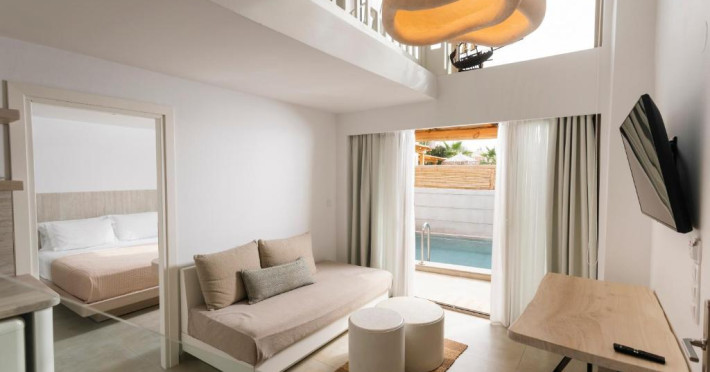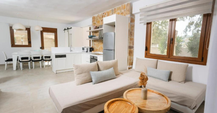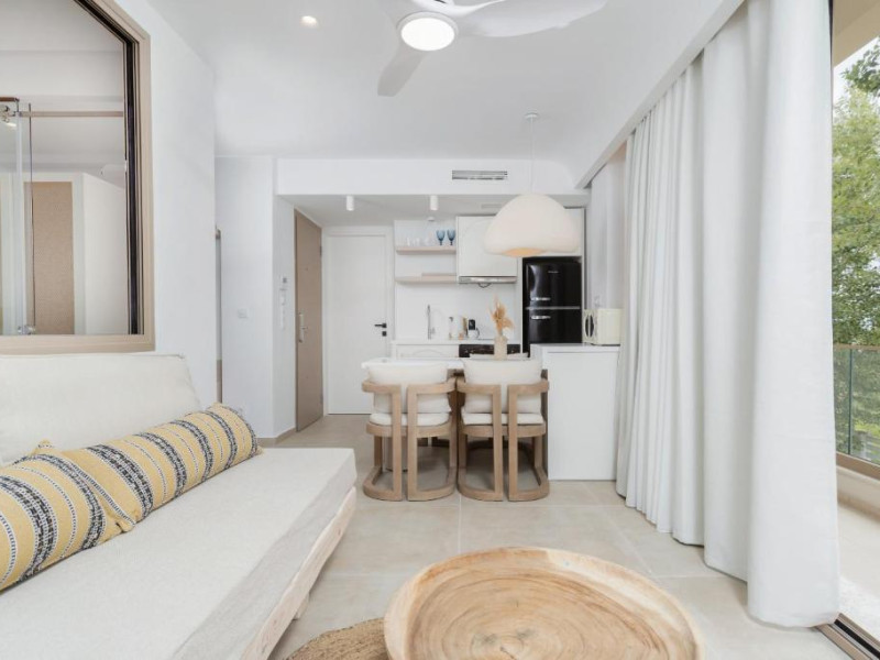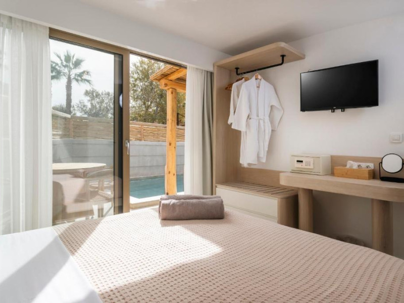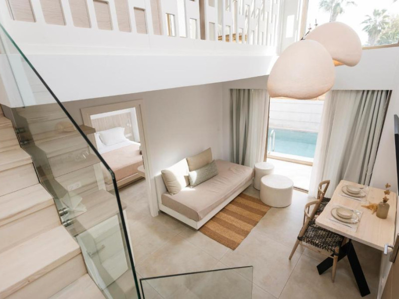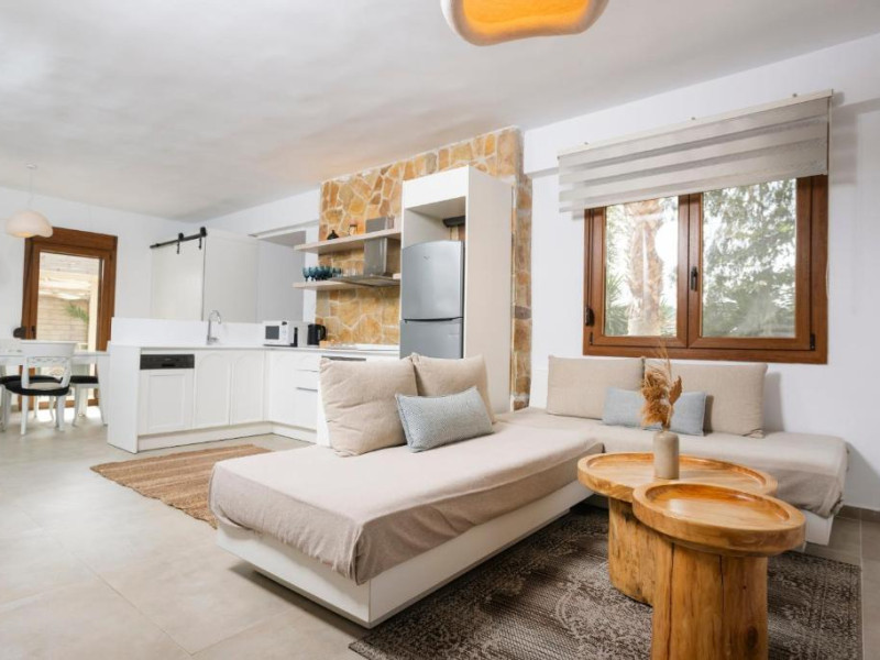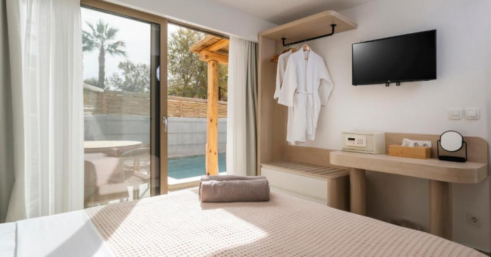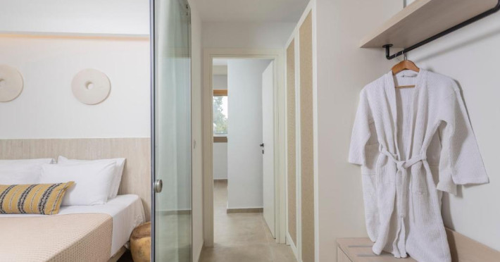 Unitățile de cazare sunt dotate cu bucătării complet echipate, living spațios și terase private care permit oaspeților să se bucure de clima mediteraneană. Fiecare suită și vilă beneficiază de design minimalist, mobilier contemporan și finisaje de calitate.