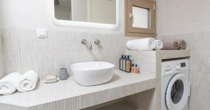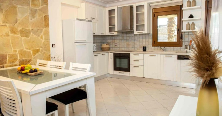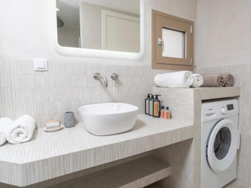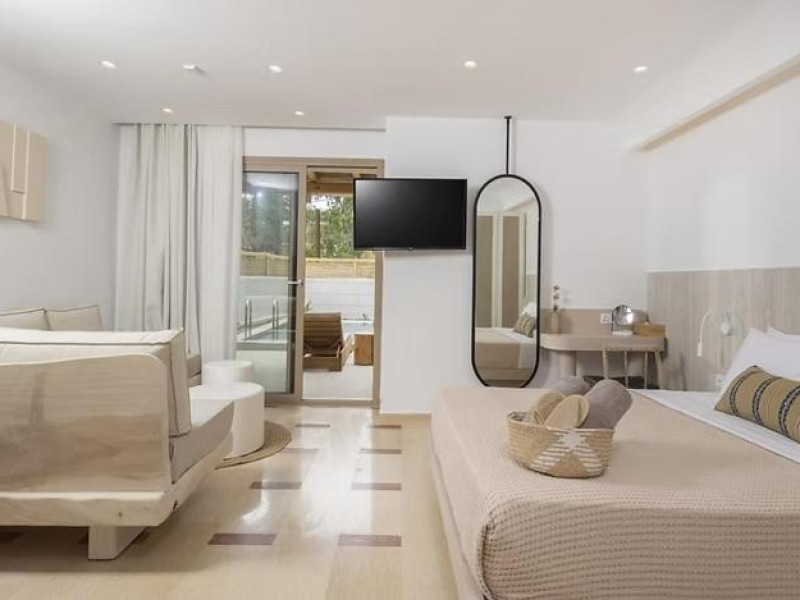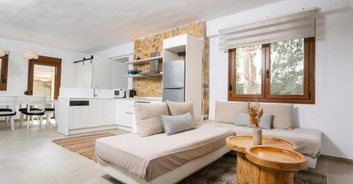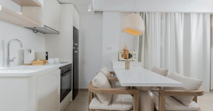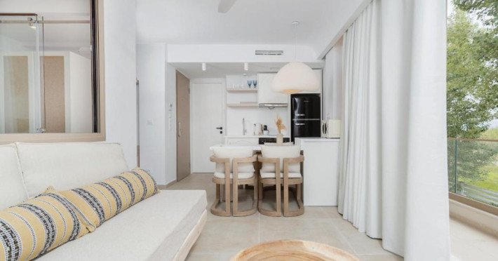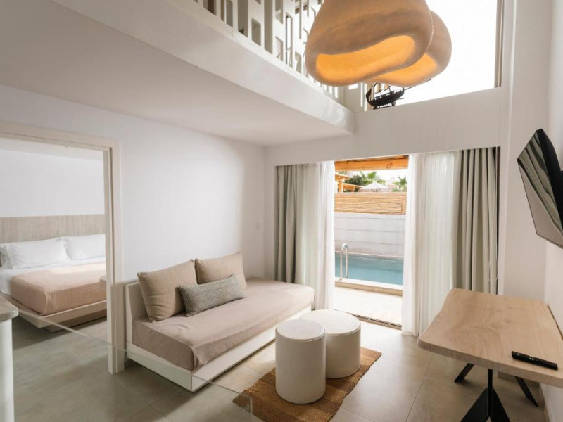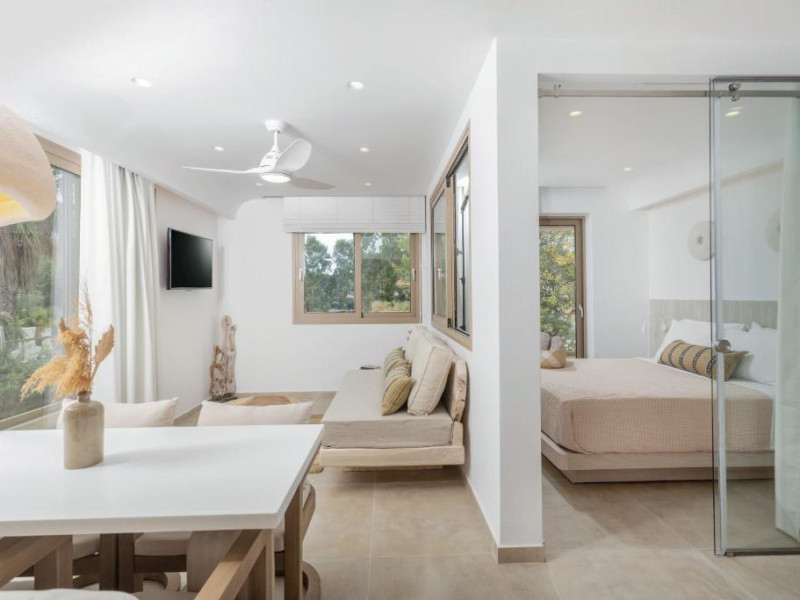 Unitățile de cazare sunt dotate cu bucătării complet echipate, living spațios și terase private care permit oaspeților să se bucure de clima mediteraneană. Fiecare suită și vilă beneficiază de design minimalist, mobilier contemporan și finisaje de calitate.