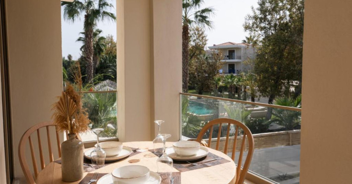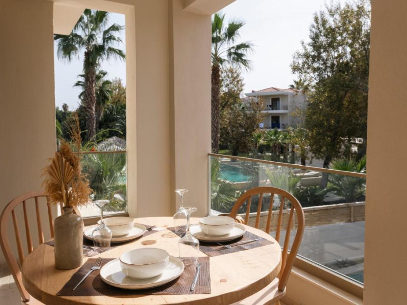 Oaspeții au la dispoziție o piscină exterioară inconjurată de șezlonguri și umbrele, precum și o zonă de grădină amenajată cu gust. Complexul se află la doar cateva minute de mers pe jos de plaja cu nisip fin din Pefkohori și de zona comercială a stațiunii, unde se găsesc taverne tradiționale grecești și magazine.