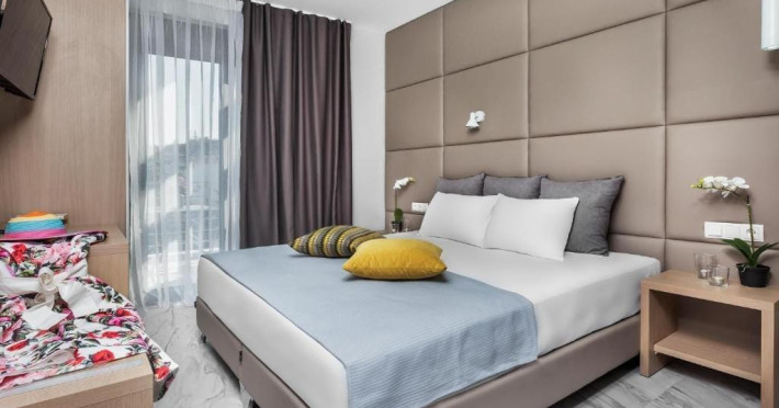 Agnes Deluxe Hotel is located in Pefkochori, Halkidiki, in a beautiful sea front location. It consists of 24 rooms, with 7 different room categories.Our rates include daily breakfast and our room service is available 24 hours per day offering a variety of options for food and drinks!Pefkochori beach is located 50 meters away!Our double beds have size 2,00 x 1,65 meters each and our single beds are 2,00 x 0,90 meters.In case you have any further question feel free to contact our reservations department via phone call ( +302310227770) or email (agneshoteldeluxe@gmail.com ).Agnes Deluxe Hotel is located in Pefkochori, Halkidiki, in a beautiful sea front location. It consists of 24 rooms, with 7 different room categories.Our rates include daily breakfast and our room service is available 24 hours per day offering a variety of options for food and drinks!Pefkochori beach is located 50 meters away!Our double beds have size 2,00 x 1,65 meters each and our single beds are 2,00 x 0,90 meters.In case you have any further question feel free to contact our reservations department via phone call ( +302310227770) or email (agneshoteldeluxe@gmail.com ).