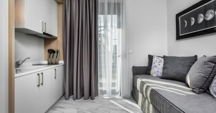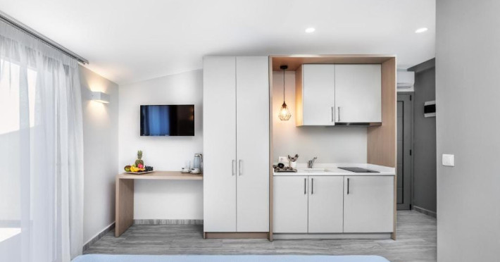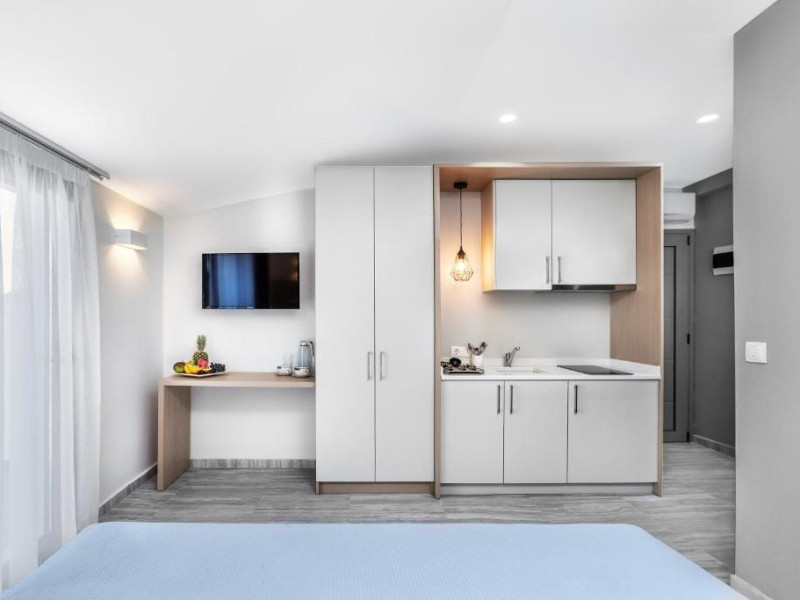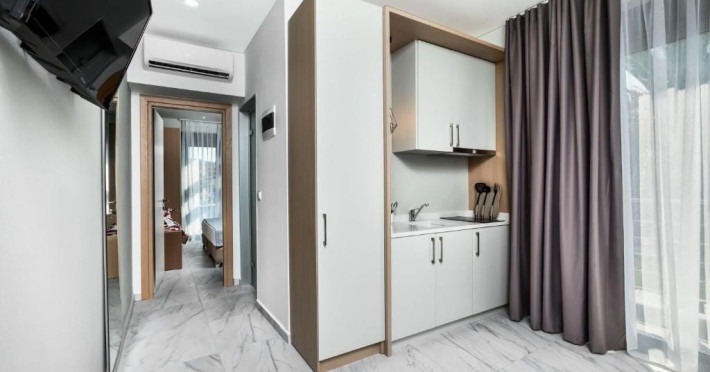 Nymphes Deluxe Accommodation is situated in Pefkohori just 400 m from Pefkohori Beach.Our rooms have city view, free WiFi , air conditioning, and a deposit box.Our guests guests also have access to our rooftop pool.