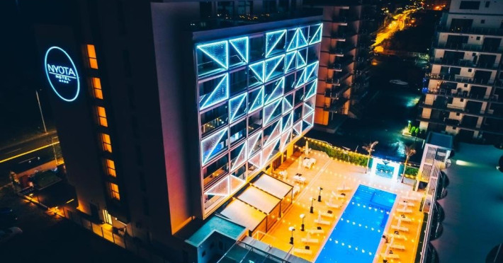 Descriere: Hotelul NYOTA intampina oaspetii cu 73 spatii de cazare potrivite pentru weekend-urile cu nopti albe dar si pentru sejururi mai lungi cu familia la Marea Neagra. Hotelul se deschide in luna aprilie si va pune la dispozitie sali de conferinte pentru team-building sau prezentari, pentru board meeting sau skype meeting. Piscina exterioara incalzita, parcarea etajata, restaurantul a la carte si vederea la mare sau la lac fac din NYOTA locul de rasfat, unde turistii pot savura o vacanta de neuitat.