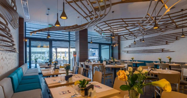 Se spune ca daca iti incepi ziua cu un mic dejun copios si o inchei cu un pahar de vin vei avea o zi minunata. Din acest motiv, la NYOTA, restaurantul este una din principalele atractii.  Gazdele au adus dorinta, ambitia si creativitatea unei echipe tinere de bucatari si ospatari, pe care le-a asezonat cu un ambient de vacanta, le-a adaugat ingrediente muzicale de relaxare si le-a amestecat intr-un mix ideal de mancare si atmosfera care face ca restaurantul Nyota sa fie cautat de la inceputul zilei pana la sfarsitul acesteia. Punctul forte este terasa restaurantului aflata langa piscina si care poate fi acoperita in functie de vreme.Restaurantul dispune 45 locuri in interior si 50 locuri pe terasa. Aceasta are sistem de acoperire si inchidere transformand restaurantul intr-unul de 90-100 locuri.
