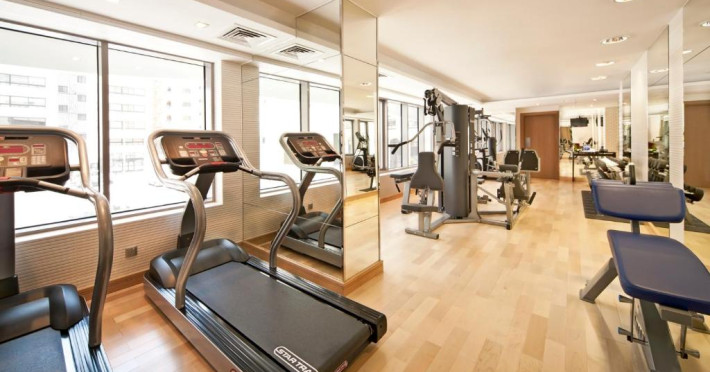 O sală de fitness cu echipamente necesare pentru o gamă variată de exerciții fizice este la dispoziția celor interesați.