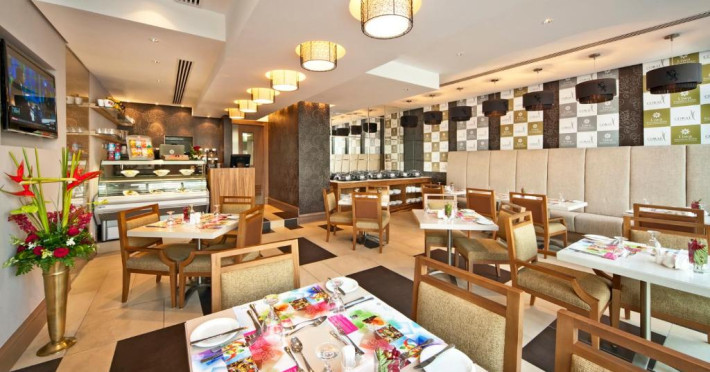 La Oaks Liwa Executive Suites oaspeții au la dispoziție un restaurant care servește mâncare à la carte. Preparate din bucătăria internațională așteaptă să fie degustate în fiecare zi. Masa poate fi servită atât în interior, cît si în aer liber, pe terasă, în funcție de vreme.