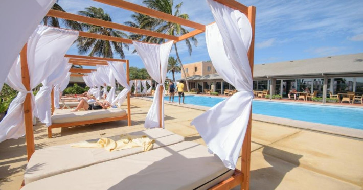 Localizare: hotelul este situat direct pe renumita plaja Santa Maria.Dotari camere: hotelul dispune de 354 camere ( standard, twin, superior, apartamente si bungalouri), acestea dispun de baie, Tv satelit, aer conditionat, telefon, mini bar, seif.