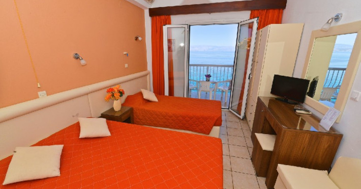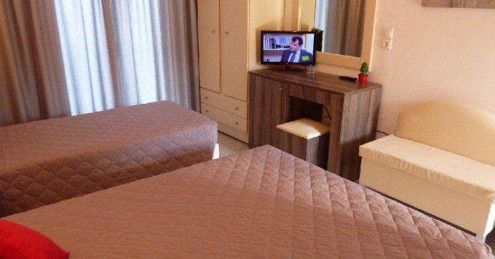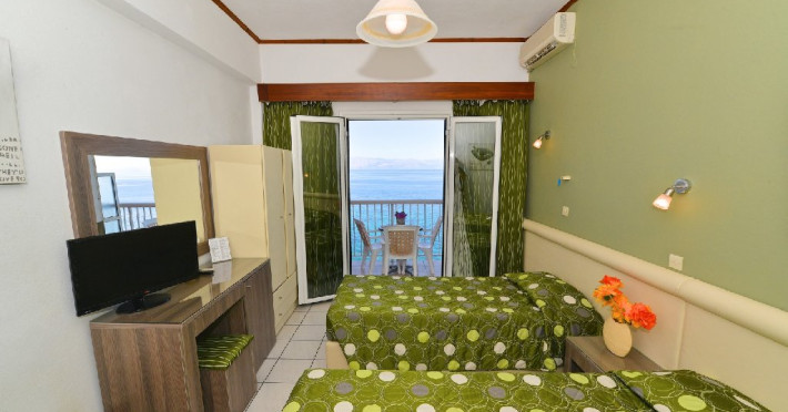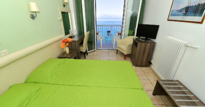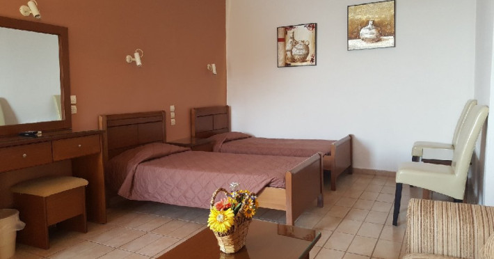 Localizare: Hotelul Oasis este situat in Perama, la 7 km de centrul orasului Corfu, la 5 km de aeroport si la 4 km de statiunea Benitses.Hotelul are 3 etaje si este distribuit interesant. Are un corp principal, plasat aproape de piscina si barul exterior, conectat in interior cu restaurantul (interior, exterior), barul si scarile ce duc la plaja suspendata, iar pe langa, la oarece distanta, sunt risipite prin vegetatia deasa, camere, apartamente cu mici terase in fata.