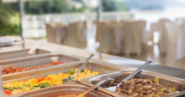 Hotelul are plaja proprie cu ponton, dar este cu pietris.