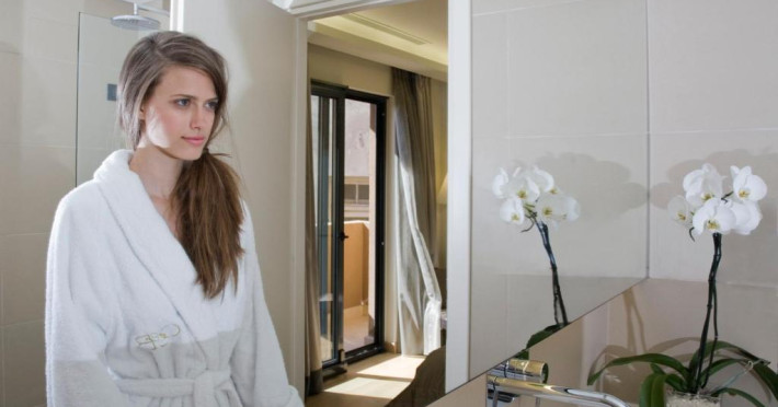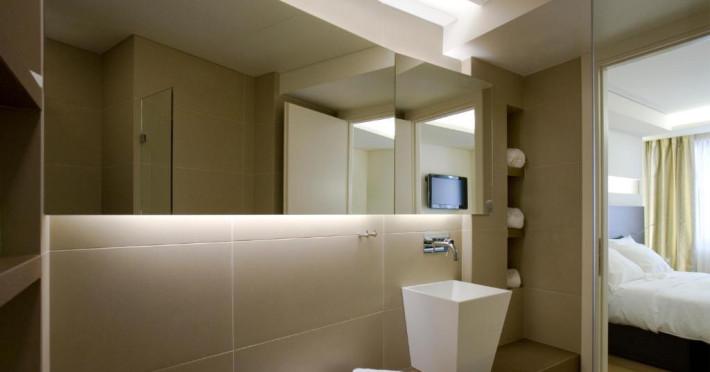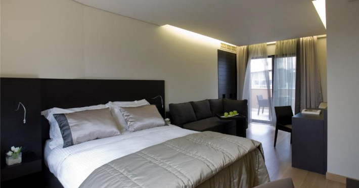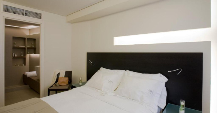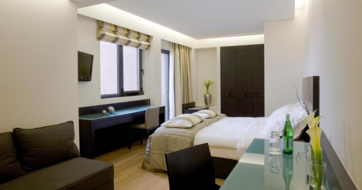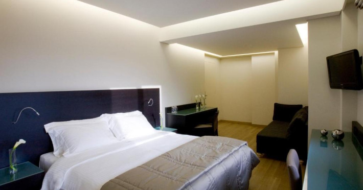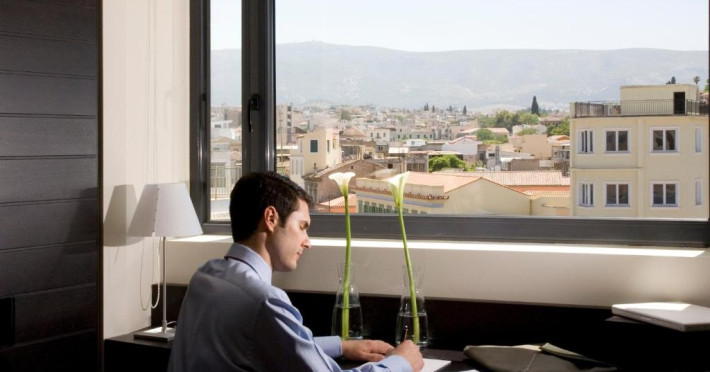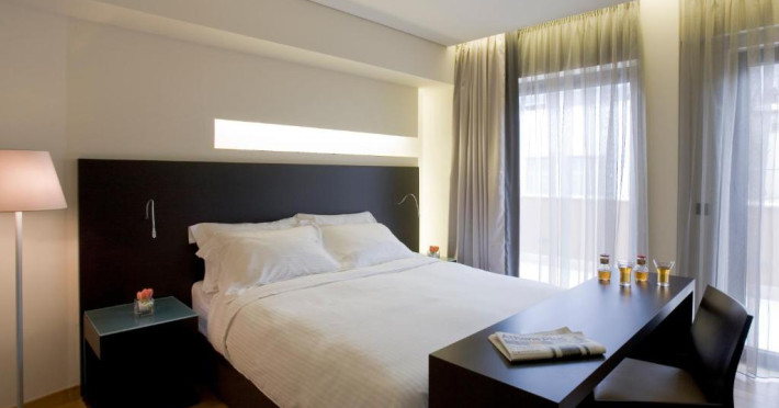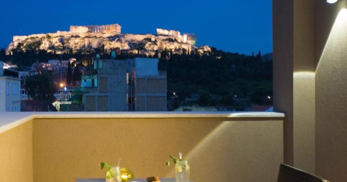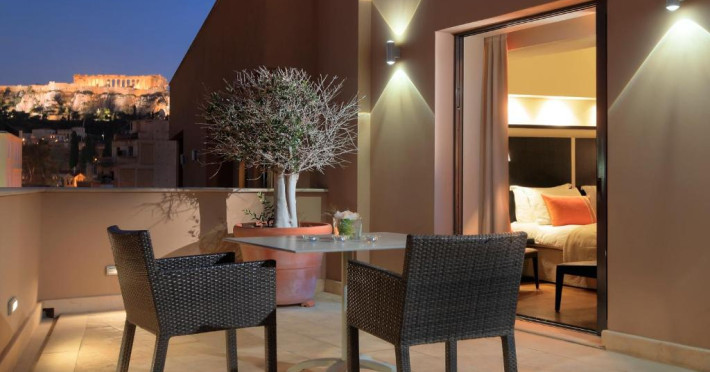 Camerele prezintă cele mai moderne facilități video și audio, mobilier elegant, lenjerie de pat din bumbac egiptean și un birou mare. Băile de marmură sunt prevăzute cu o cabină de duș cu pereți din sticlă cu design realizat pe comandă. Unele camere oferă vedere la Acropole.