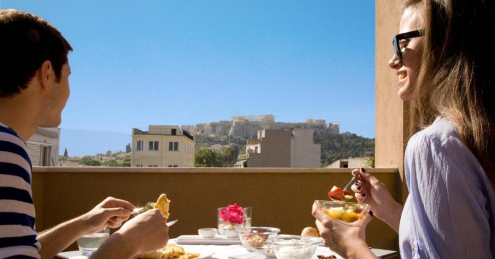Hotelul O&B Athens Boutique servește un mic dejun tip bufet, cu preparate calde. Lounge barul elegant și restaurantul sunt deschise pe toată durata zilei. Hotelul oferă room service nonstop.