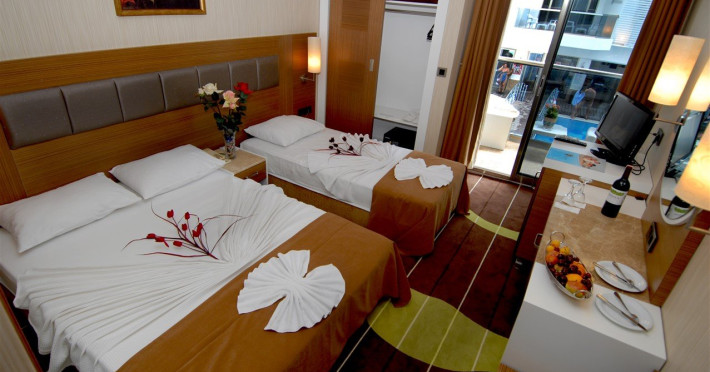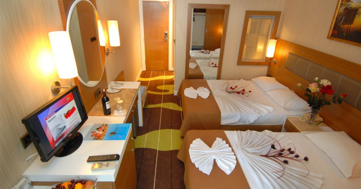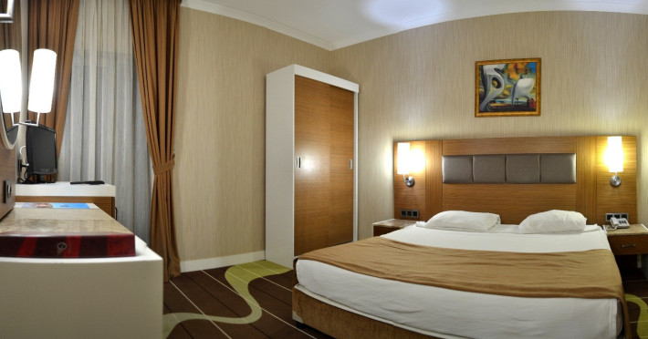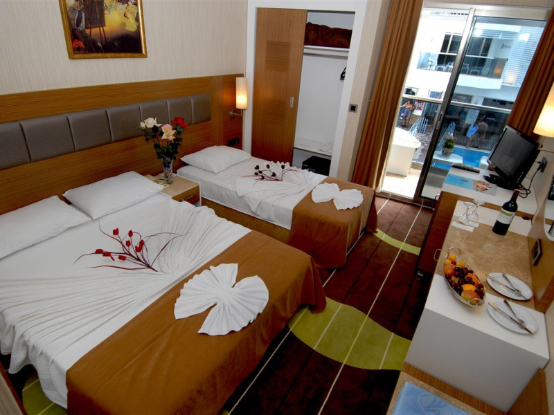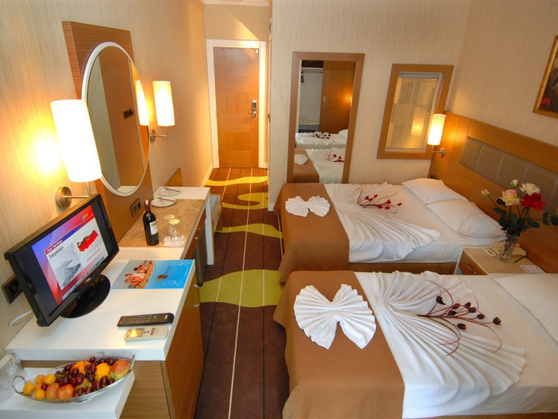 Decorat in stil traditional turcesc, hotelul ofera o panorama extraordinara asupra Mediteranei si pune la dispozitia turistilor sai restaurant, internet in camere (extra), loc de joaca pentru copii si miniclub, piscina interioara, piscina exterioara, piscina pentru copii, jocuri, lobby bar, pool bar, beach bar, sezlonguri si umbrele pe plaja.