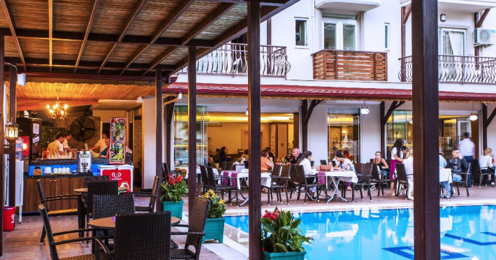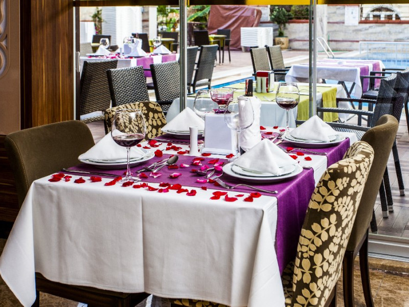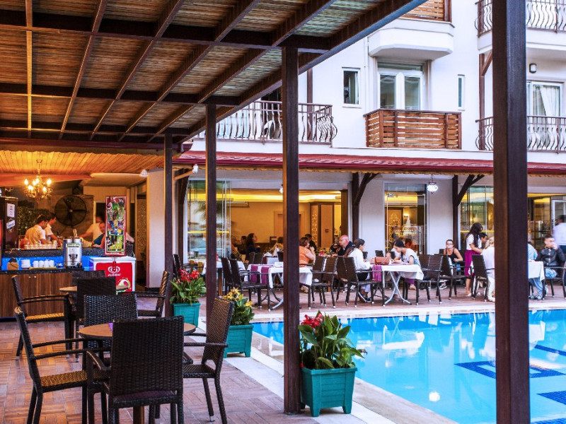 Micul dejun(07:30-10:00), snack-uri, pranz(12:30-14:00) si cina(19:00-21:00) sunt servite in stil bufet suedez in restaurant principal. Bauturi alcoolice locale (bere la draft, vin rosu/alb, spirtoase si sucuri) se servesc la restaurantul principal sau la barul piscinei, cafea, ceai, suc si apa se servesc de la bufet. in intervalul 10:00-23:00. Sezlong si umbrela, gratuit la plaja privata. Intrarea gratuita la diferite spectacole, 3 zile/saptamana.