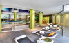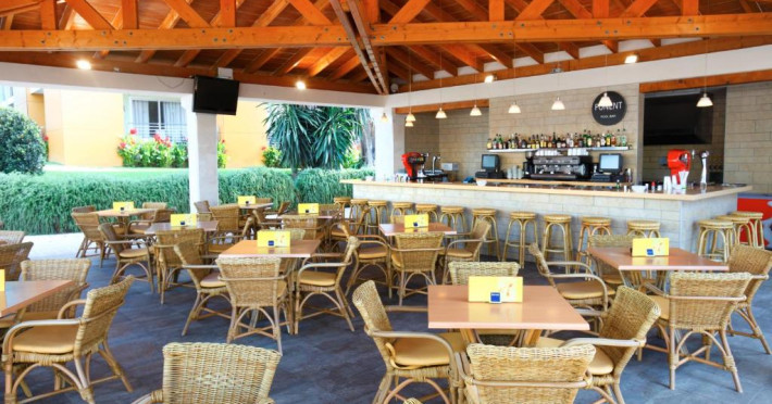 Restaurantul tip bufet al hotelului servește mancăruri internaționale și oferă bucătărie deschisă. Există, de asemenea, un bar la piscină și un bar in zona de sport.