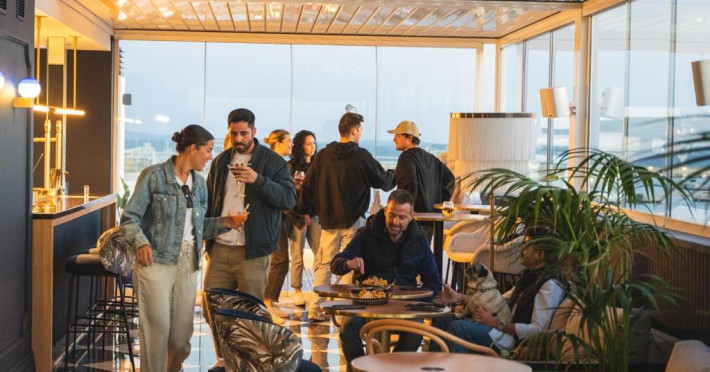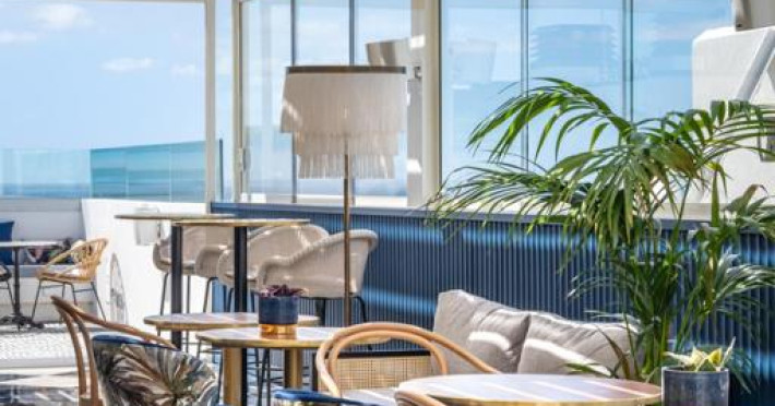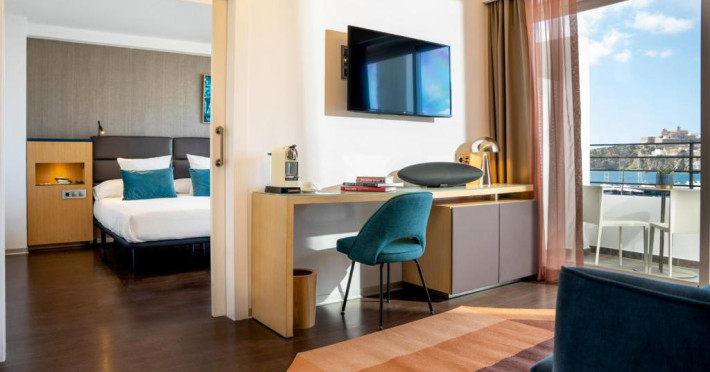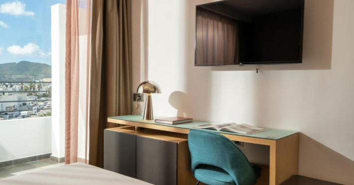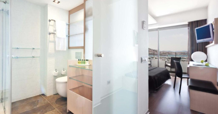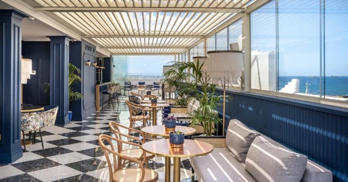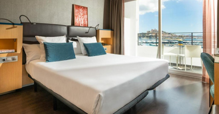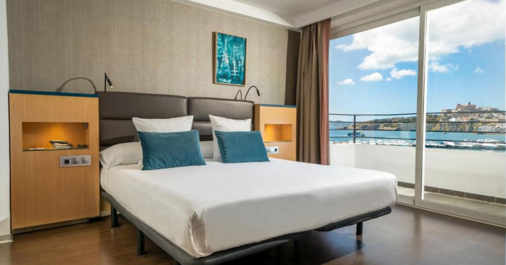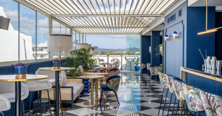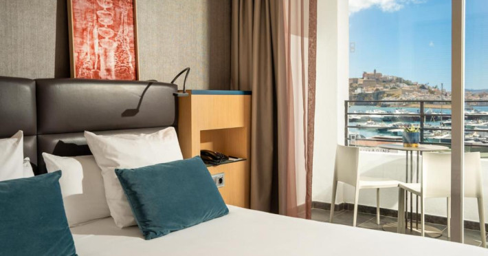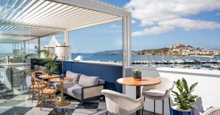 Terasa de pe acoperișul hotelului, Sky Bar, vă permite să admirați priveliștea deosebită asupra Mării Mediterane, a castelului și a orașului vechi Ibiza, chiar vizavi de portul privat din Marina Botafoch.