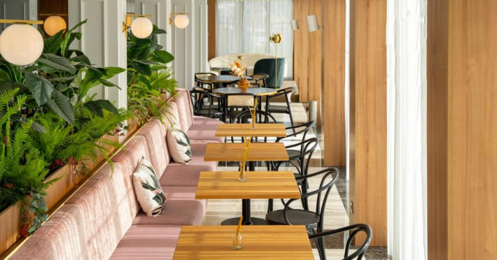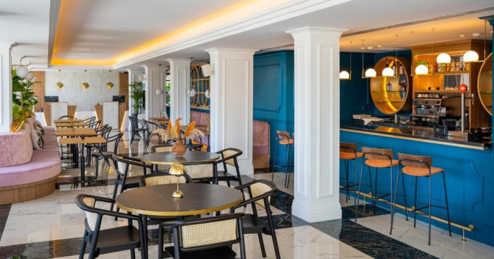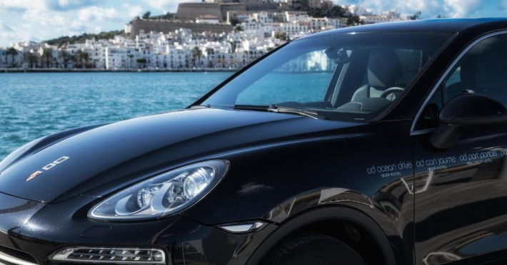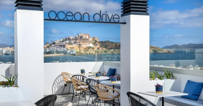 Ocean Drive Ibiza este inspirat de South Beach și decorat in stil art-deco din Miami. Hotelul este și mai impresionant noaptea, cand este iluminat de lumini albastre de neon și vizibil peste golful Ibiza.