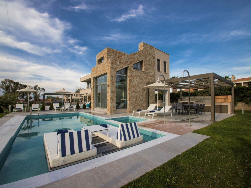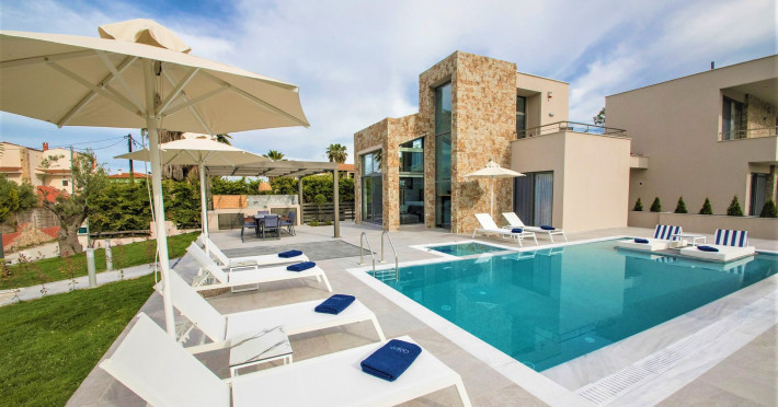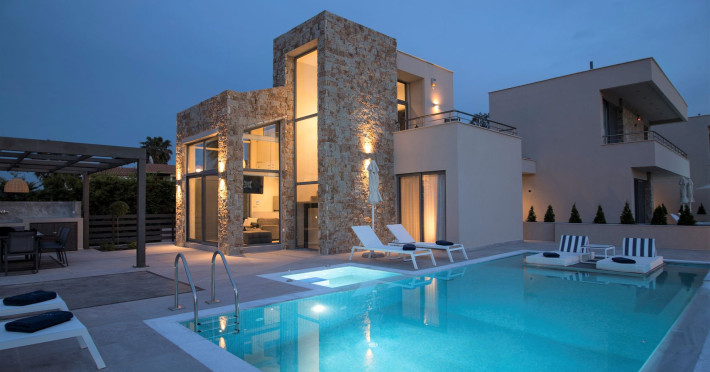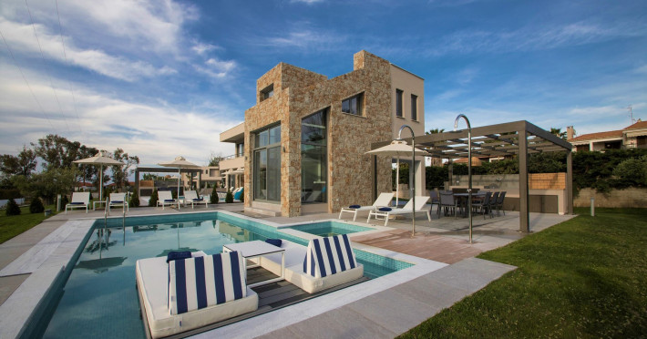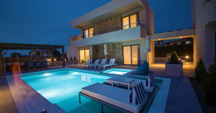 Ocean Private Villas is a high standard complex of villas in Pefkochori, Halkidiki for you who want to relax and spoil yourself while on vacation. With great respect for the environment, we designed our villas in a way that reduces the footprint and respects our planet via green power electricity. Every villa uses solar energy and generates it to electricity so that you can enjoy the most out of your vacation with ultimate respect for the environment. Quality is our prime intention in Ocean Private Villas so we chose ecological dyes for our villas’ walls to prevent allergic reactions to chemical materials. With carefully selected COCO-MAT natural mattresses and pillows, we want you to have the best sleep experience you ever had. Every swimming pool is designed especially for you, who love to swim and relax all day long by the pool. The spacious jacuzzi, which can also be used as a kids’ pool, will make your whole family relax and enjoy their vacation. Every private pool is also a heated pool and can satisfy even the most demanding guests. Every villas’ outdoor dining area includes a very spacious and easy in use barbecue, which is specifically designed for your whole family and friends to enjoy every meal of the day. In Ocean Private Villas we commit that your arrival and staying in our complex of villas in Halkidiki will be one of your greatest experiences. Let yourself enjoy our hospitality and we will make sure that it will surpasses your expectations.
