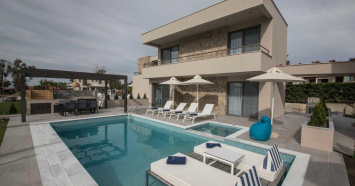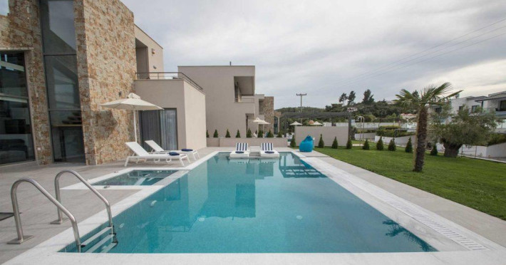 Ocean Private Villas is a brand-new, high standard resort in Pefkochori, Chalkidiki ideal for all those who wish to relax and spoil their selves while on vacation. With great respect for the environment, the villas are designed in a way that reduces the footprint and respects our planet via green power electricity. Every villa uses solar energy and generates it to electricity so that guests can enjoy the most out of your vacation with ultimate respect for the environment. Hotel Information Set in Pefkohori, 700 m from Pefkohori Beach and 1.1 km from Paralia Glarokabos, Ocean Private Villas offers accommodation with free WiFi, air conditioning and access to a garden with an outdoor swimming pool.Each unit is fitted with a balcony, a fully equipped kitchen with a dishwasher, a seating area with a sofa, a flat-screen TV, a washing machine, and a private bathroom with hot tub and a hairdryer. A microwave, a fridge and oven are also offered, as well as a kettle and a coffee machine.The villa offers a barbecue. Each villa has its own private pool which can also be heated to satisfy even the most demanding guests and include a spacious Jacuzzi inside.Ocean Private Villas is a brand-new, high standard resort in Pefkochori, Chalkidiki ideal for all those who wish to relax and spoil their selves while on vacation. With great respect for the environment, the villas are designed in a way that reduces the footprint and respects our planet via green power electricity. Every villa uses solar energy and generates it to electricity so that guests can enjoy the most out of your vacation with ultimate respect for the environment. Hotel Information Set in Pefkohori, 700 m from Pefkohori Beach and 1.1 km from Paralia Glarokabos, Ocean Private Villas offers accommodation with free WiFi, air conditioning and access to a garden with an outdoor swimming pool.Each unit is fitted with a balcony, a fully equipped kitchen with a dishwasher, a seating area with a sofa, a flat-screen TV, a washing machine, and a private bathroom with hot tub and a hairdryer. A microwave, a fridge and oven are also offered, as well as a kettle and a coffee machine.The villa offers a barbecue. Each villa has its own private pool which can also be heated to satisfy even the most demanding guests and include a spacious Jacuzzi inside.