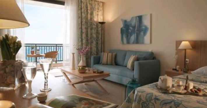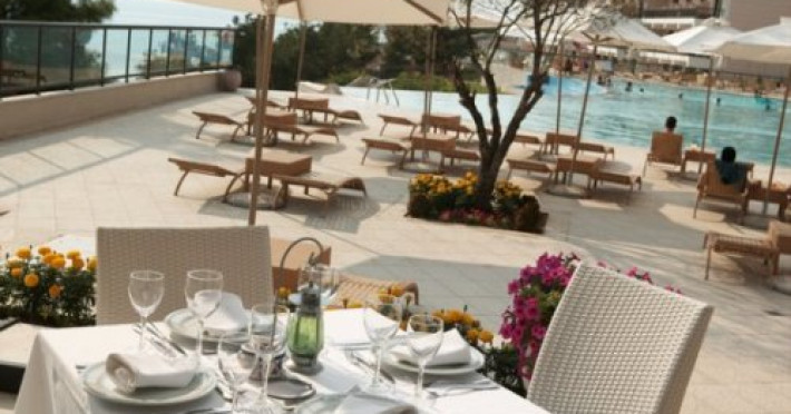 Hotelul pune la dispozitia turistilor restaurant principal, 3 restaurante a la carte cu rezervare (italian, asiatic, taverna greceasca), baruri, centru spa, baie turceasca, sauna, centru spa, sali de tratamente, salon de coafura, salon manichiura si piscina interioara incalzita cu jacuzzi.