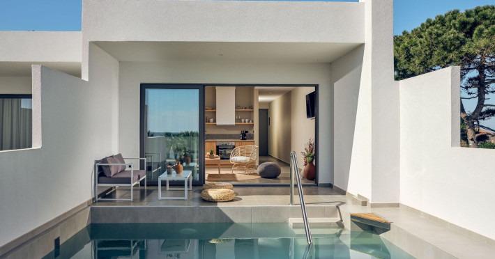 Welcome to Oceanis Suites, a luxurious world of countless amenities and beautiful design, located âliterally- a few meters away from a lovely beach. Oceanis consists of three newly built suites, situated on a lovely beach, each with its own private swimming pool! Each suite measures 50 sq.m. and sleeps up to 2+1 persons.Datorita dinamicitatii domeniului disponibilitatea ofertelor se modifica de la un moment la altul. De aceea ofertele sunt valabile in limita locurilor disponibile. Agentia nu este responsabila pentru eventualele neconcordante care pot aparea intre informatiile privind tarifele si alte detalii din site si informatiile primite in agentie. In aceste cazuri vor avea prioritate, intotdeauna, informatiile primite in agentie.