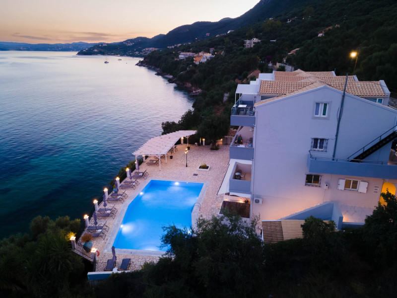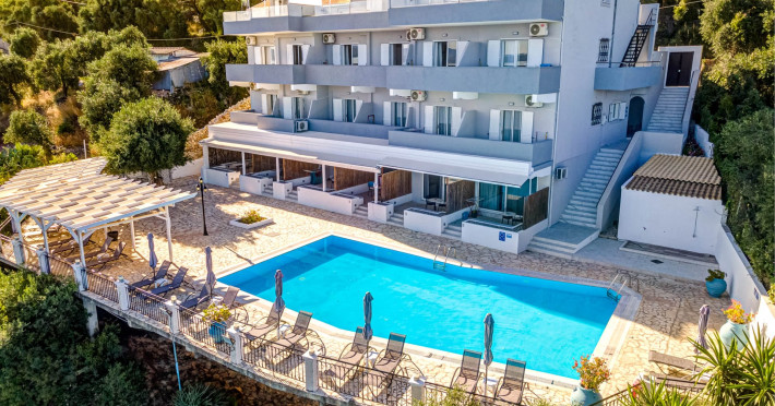 Oceanis rooms apartments can promise you a wonderful and unforgettable stay at Corfu Island. OCEANIS Apart Hotel is located at Glyfa Barbati (25 minutes drive from town), a magic coast of the North-East Corfu Island in Greece. Built alongside the sea and on Pantokrator mountain foot, in a spectacular natural environment combining the beauties of sea and mountain, it is surrounded from one side by the Ionian sea and from the other side by long terraced stretches of olive trees.