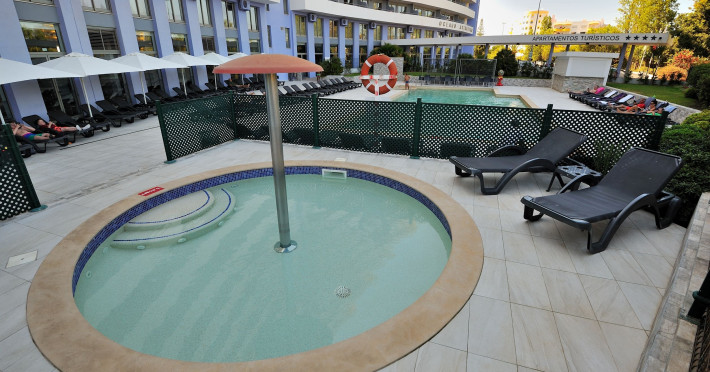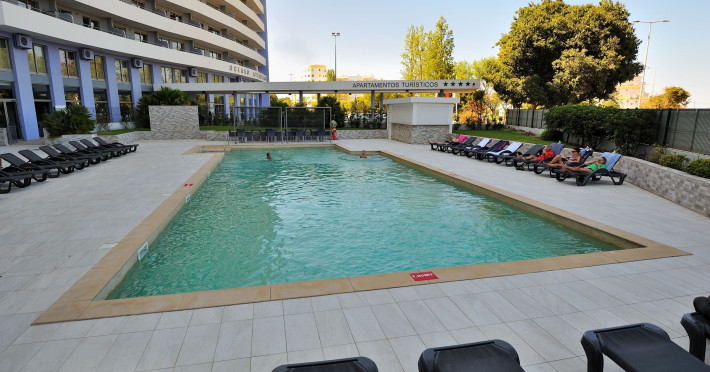 The accommodation Oceano Atlantico Apartamentos Turisticos is located approximately 550 m from a beach. The nearest restaurants and bars can be reached in a few minutes on foot. The city centre is around 1,5 km away. A supermarket and other shops you reach after around 550 m. The hotel is equipped with a 24h reception, a lobby, Wi-Fi, internet access, a lift, a first aid kit as well as parking spaces. In the outdoor area of the property you will find a heated pool. There is also a children's pool. Inside the hotel you can use an indoor pool. You can store your valuables in the safe, and your luggage in the hotel`s storage room. In addition, the hotel Oceano Atlantico Apartamentos Turisticos is video-monitored 24h a day. There is also a laundry service available at an additional cost to customers. Ironing equipment can be borrowed at the hotel. For conventions and other business meetings, the hotel offers a conference area with a catering service. A photographer can also be ordered from the hotel for business events. If you want to explore the holiday region, you can use the car and motorbike rental service close to the hotel. Due to its barrier-free facilities , such as barrier-free entrances and a wheelchair accessible lift, the hotel is also suitable for wheelchair users. Catering As catering services the hotel offers half board, full board and self-catering. Breakfast is offered continental. Enjoy your lunch as a set meal. Dinner is served à la carte. For the meals, there are a restaurant (gluten-free and vegetarian dishes) and a bar as well as the pool bar. Distances
