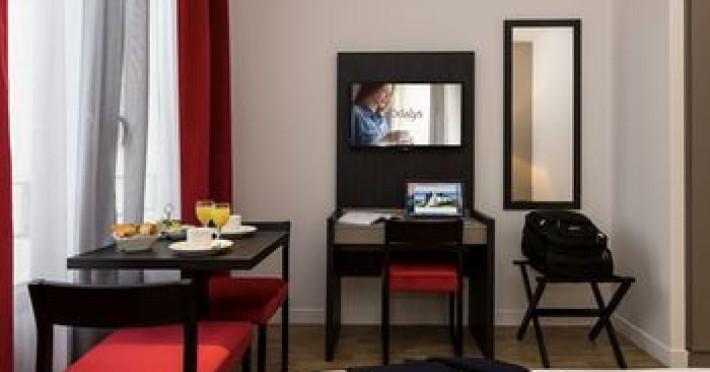 Overview: The friendly staff at the reception desk are happy to answer any questions. Amenities available at the hotel include a baggage storage service and a safe. Wireless internet access allows guests to stay connected while on holiday. The hotel has a range of facilities for guests with disabilities. The hotel has wheelchair-accessible facilities and a lift. There are a number of shops as well. A garden provides extra space for rest and relaxation in the open air. Additional facilities include a TV room. Guests arriving by car can park their vehicles in the garage or in the car park (for a fee). Further services and facilities include a 24-hour security service, a transfer service, a laundry service and a coin-operated laundry. A fax machine is on hand for guests business and communication needs. Location: This hotel is located in Paris. LeisureFacilities: The indoor and outdoor pools are ideal for exercise as well as relaxation. The sun loungers are perfect for soaking up some sun. The hot tub in the pool area promises pure relaxation. There are many ways to relax or stay active at the hotel, including a spa, a sauna, a steam bath and a hammam. Activity coordinators organise an entertainment programme for adults and children. Copyright GIATA 2004 - 2024. Multilingual, powered by www.giata.com for client no. 124567 Rooms: Air conditioning and central heating ensure that rooms maintain comfortable temperatures. The rooms have a double bed and a sofa bed. Extra beds can be requested. A safe and a desk are also available. There is a fully-equipped kitchenette with a refrigerator, microwave, tea/coffee station and dishwasher. A telephone, a television with satellite/cable channels and WiFi (no extra charge) provide all the essentials for a comfortable holiday. Bathrooms include a hairdryer and are equipped with a shower and a bathtub. As a special feature, bathrooms are also stocked with cosmetic products and a selection of towels. Wheelchair-friendly rooms can be booked. The hotel has family rooms and non-smoking rooms. RestaurantsAndBars: There is a café on the premises. A generous breakfast buffet guarantees a great start to the day. OtherInformation: The hotel requires a deposit per room to be paid at arrival, which will be returned at check-out after an inspection.Datorita dinamicitatii domeniului disponibilitatea ofertelor se modifica de la un moment la altul. De aceea ofertele sunt valabile in limita locurilor disponibile. Agentia nu este responsabila pentru eventualele neconcordante care pot aparea intre informatiile privind tarifele si alte detalii din site si informatiile primite in agentie. In aceste cazuri vor avea prioritate, intotdeauna, informatiile primite in agentie.