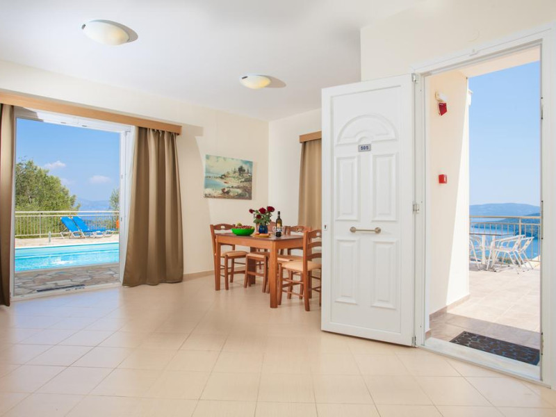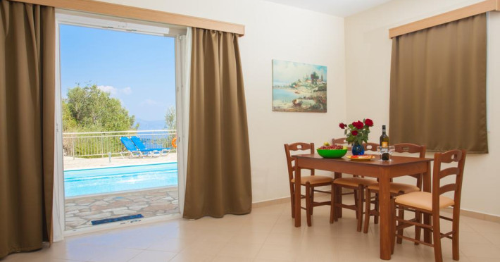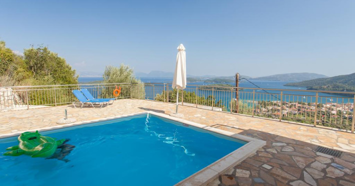 La poalele muntelui Skaros, i foarte aproape de plaja cu nisip i cosmopolitul Nidri , este situat complexul Odysseas Villas. Aceast unitate ofer cazare cu piscin privat i vedere panoramic la Marea Ionic i insulele prinilor (Insula Scorpios, Madouri, Cheloni, Scorpidi i Meganisi). Fiecare vila este decorat elegant, ofer tot confortul modern i este echipat cu o piscin de 35 mp, 2 dormitoare, 2 bi, o buctrie complet utilat, un living, tv prin satelit i un loc de parcare. Odysseas Villas sunt situate intr-un loc linitit, oferind momente linitite i un sejur confortabil i de neuitat. Magia naturii i frumuseea zonei inconjurtoare ofer linite, relaxare i un sentiment de exclusivitate i un sejur lipsit de griji.Datorita dinamicitatii domeniului disponibilitatea ofertelor se modifica de la un moment la altul. De aceea ofertele sunt valabile in limita locurilor disponibile. Agentia nu este responsabila pentru eventualele neconcordante care pot aparea intre informatiile privind tarifele si alte detalii din site si informatiile primite in agentie. In aceste cazuri vor avea prioritate, intotdeauna, informatiile primite in agentie.