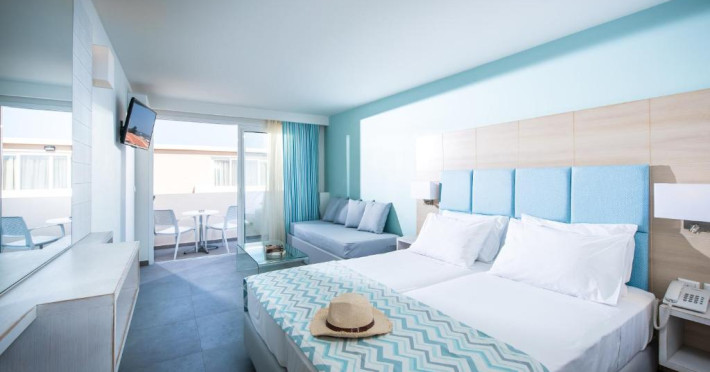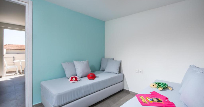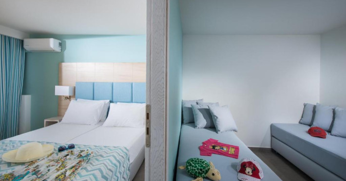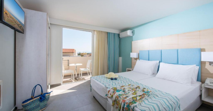 Sunt disponibile 150 camere. În camere există baie cu cadă sau duș prevăzută cu foehn. Camerele de la Odyssia Beach sunt dotate cu aer condiționat, Tv cu canale prin satelit și seif. Unele camere au balcon cu vedere la mare, unde oaspeții pot admira apusul sau răsăritul soarelui. Oaspeții au acces gratuit la serviciul Wi-fi în camere. Curățenia in cameră se face zilnic. Fiecare unitate de cazare are frigider. Proprietatea oferă camere pentru familie cu o suprafață mai mare și un număr mai mare de paturi față de cele standard.