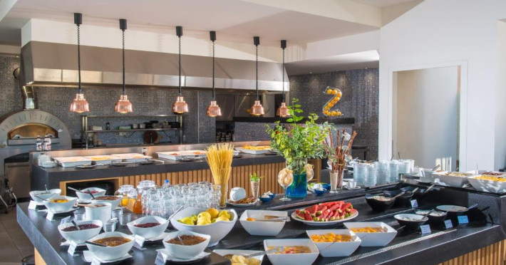 La Odyssia Beach oaspeții au la dispoziție 2 restaurante unde pot savura mâncăruri delicioase, în stil bufet sau à la carte. Preparate din bucătăria internațională și mediteraneană așteaptă să fie degustate în fiecare zi la micul dejun, prânz și cină. Masa poate fi servită atât în interior, cît si în aer liber, pe terasă, în funcție de vreme. Oaspeţii pot avea diverse băuturi răcoritoare sau alcoolice la bar. Pentru cei cu anumite nevoi de nutriție, Odyssia Beach oferă meniuri pentru diete speciale.