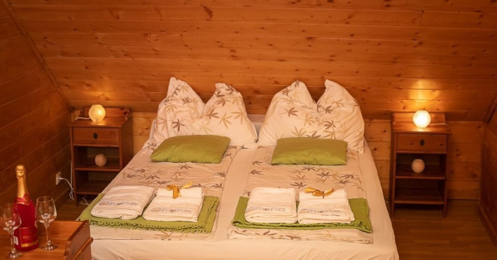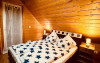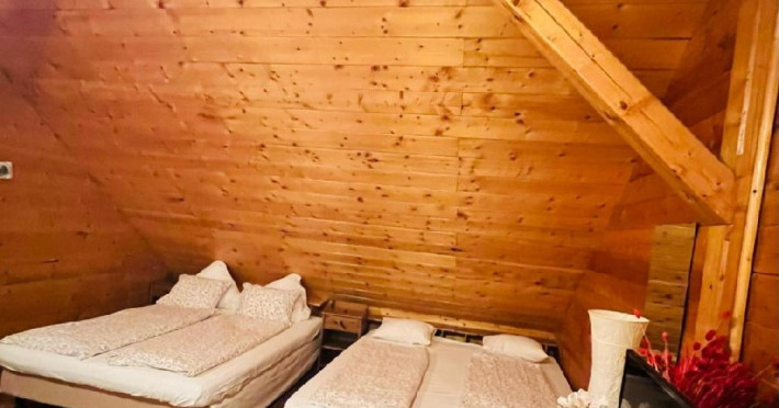 Ushuaia Camera dubla cu balcon - Camera Ushuaia, mansardata si imbracata in lemn cu miros de brad, confera o atmosfera odihnitoare, care linisteste simturile. Camera dispune de pat matrimonial king size (1,70x1,90), balcon privat cu vedere la intrarea in pensiune.
