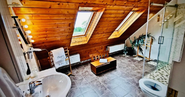Un dus fierbinte in baia mansardata poate alunga oboseala acumulata pe traseul anevoios de munte.