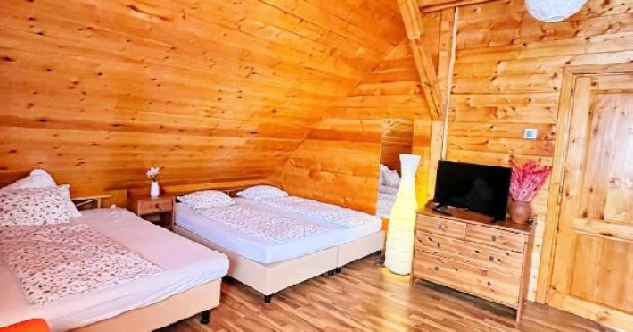 Cazare in 5 camere (maxim 16 persoane), acces la o bucatarie complet utilata, parcare, wifi, foisor cu gratar, ceaune si cuptor de lut (lemnele si carbunii nu sunt incluse), salon de petreceri cu sistem audio, kit karaoke, masa de poker, masa de ping pong.