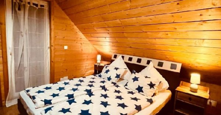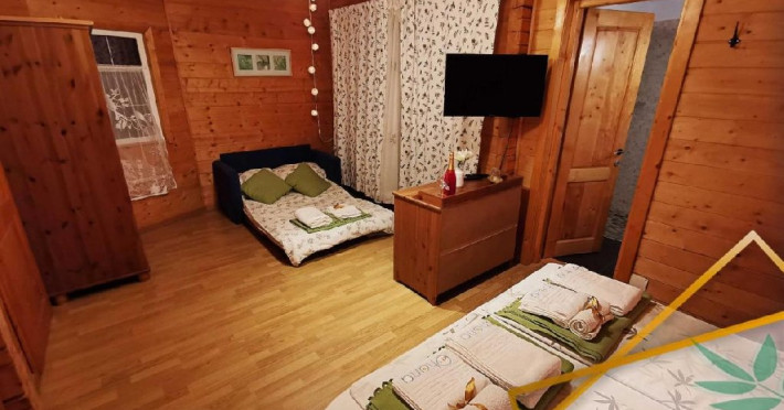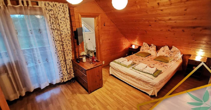 Camera este dotata cu pat matrimonial dimensiunea 180x200 si 1 canapea extensibila.