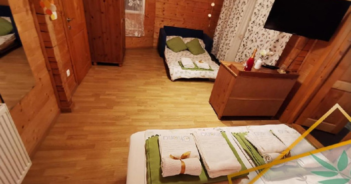 Camera este dotat cu 2 paturi matrimoniale dimensiunea 180x200 + 1 canapea extensibila