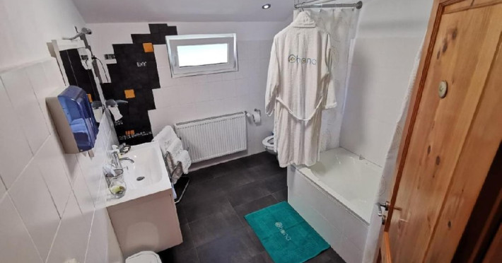 Baie cu dus si incalzire in pardoseala, articole sanitare gratuite (Dental Kit, gel de dus, sampon)