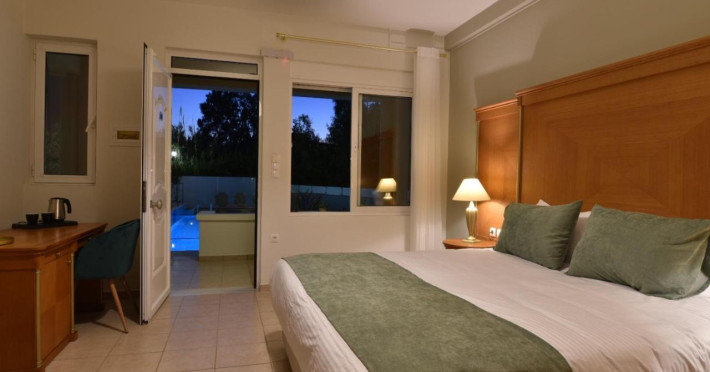 Camerele confortabile de la Okeanis Ii sunt dotate cu pardoseală de gresie/ marmură, aer condiționat, Tv și seif. În camere există baie cu cadă sau duș prevăzută cu foehn. Camerele au balcon cu vedere la piscină sau la grădină. Oaspeții au acces gratuit la serviciul Wi-fi în camere.