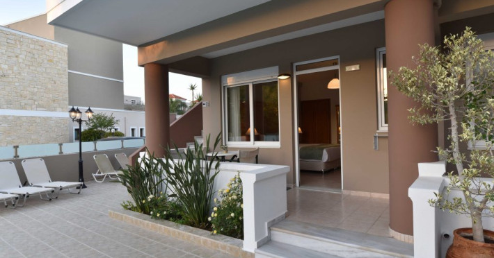Okeanis Golden Resort is an ideal vacation choice for couples, families and groups who demand the best for their holidays. Architecture is characterized as classic with modern touches creating a luxury atmosphere of leisure and pleasure. Stylish and functional double rooms, comfortable family rooms, cozy maisonettes and rooms with private pool create a high level of modern Greek hospitality. Okeanis Golden Resort is located in Agii Apostoli, an evergreen area just 3.5km of Chania city. Within a distance of 100m you may reach Agii Apostoli park while area’s best beaches are within no more than 3’walking distance. Area’s landscape creates a perfect chance for running, cycling, hiking and beautiful walks along the curvy coastline. Exploring Agii Apostoli you could find ATMs, supermarkets, restaurants, coffeeshops, markets with local products etc. Furthermore, city bus station is just 200m away from the hotel offering easy transfer to the city of Chania.