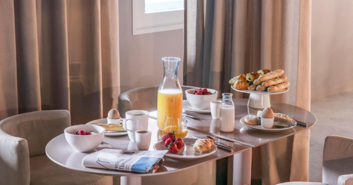 In fiecare dimineață se oferă un mic dejun tip bufet. In lounge se oferă pe tot parcursul zilei băuturi răcoritoare, incluse in tarif, iar seara, oaspeții beneficiază de un bufet cu aperitive, legume proaspete, sosuri și produse de sezon.